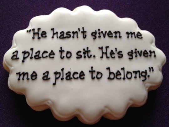 “I know at that moment what he’s given me and it isn’t a chair. It’s an invitation, a welcome, the knowledge that I am accepted here. He hasn’t given me a place to sit. He’s given me a place to belong.”