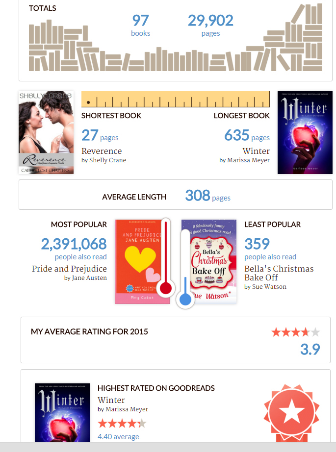 I was a bit disappointed to miss my Goodreads goal of 100 books last year, but I was pretty close and I honestly just lost interest in reading a bit in December with too much other stuff on the go. I’m back at it now though and I’m so excited to make myself some new reading goals for the year. Towards the end of last year, I was hesitant about my feelings towards the Goodreads book challenge, because it’s just a number, and quality/enjoyment is more important to me than the number, but I set my 2016 challenge to 100 books again because I like how it keeps me on track a bit. If I don’t meet it again, that’s OK.