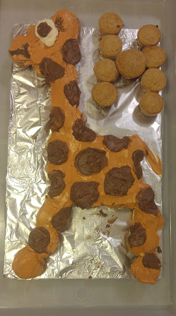 I made this delicious giraffe cupcake cake for her party, which was a bit giraffe-themed: