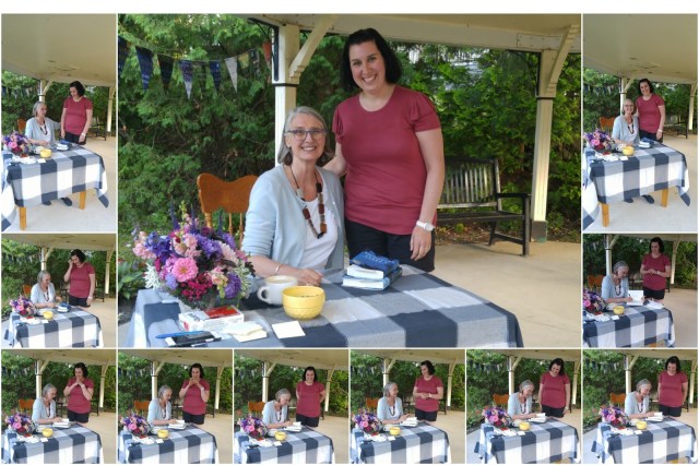 I was so impressed with Louise Penny; she signed books and chatted with fans for at least 3 hours (I waited for probably 2 hours myself) and took photos too. Since I was waiting in line with strangers (my family was at the campground, luckily for the kids), we all got to chatting about books in general and the Gamache series and a wide range of other topics. While I waited, I was trying to figure out how I could get one picture taken with the author since I was there on my own. Not to worry – I ended up with about 20 photos from a photographer volunteer that I could even turn into a video of the 3 minutes I spent chatting with her. LOL. See? Here are the majority of the pictures of me with Louise Penny: