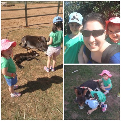 I went to my first HUGE book sale the following weekend and picked up a few things, while Brian took the girls to the Discovery Centre and I met them there. It was fun!! We also got a chance to go back to the farm where Molly had fallen in love with the baby donkey, and this time they got to go in the pen and pet the animals more, which was a blast. This little llama is sooo fun.